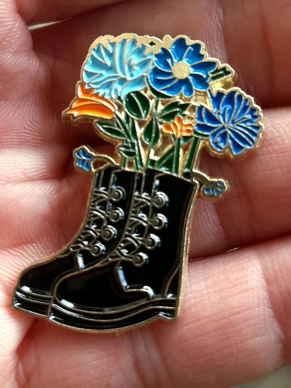 Металевий значок квіти чоботи ботільони ботинки пін брошка