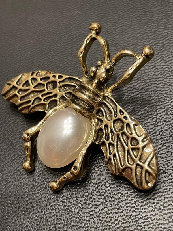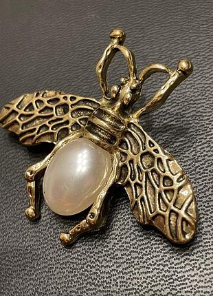Елегантна брошка - бджола. Гарний жіночий аксесуар. Цинковий сплав, імітація перлів. Добротна застібка. Розмір 4*5см Вага 14гр