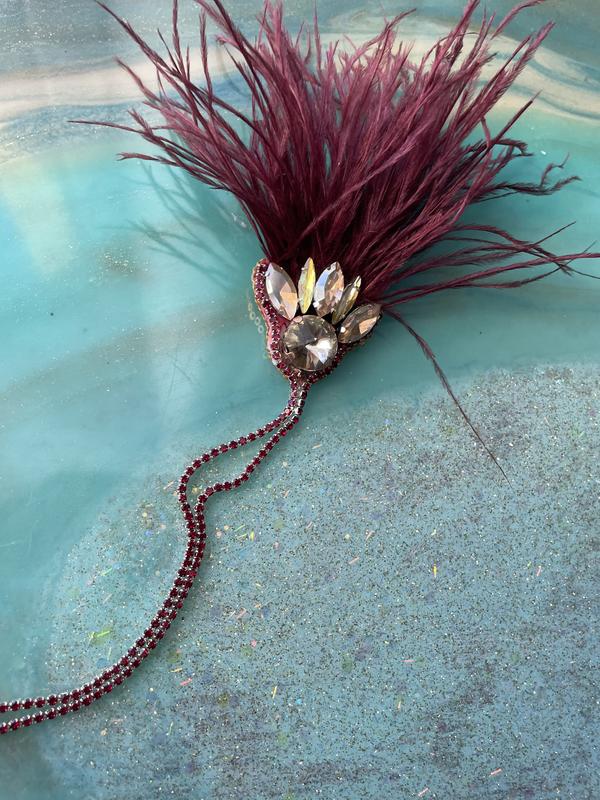 Брошь ручной работы с перышками страуса в трендовом цвете.