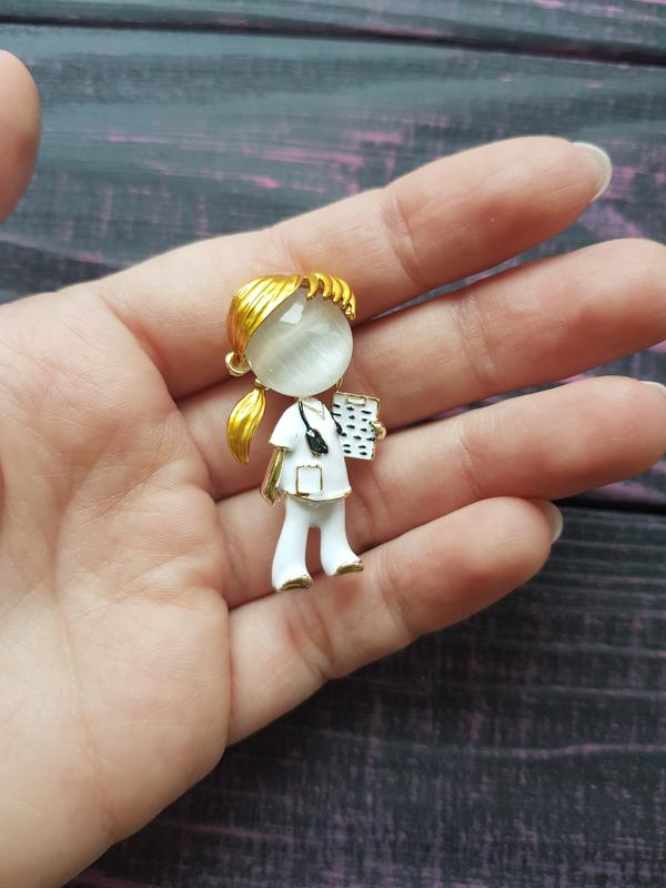 Брошь девочка врач