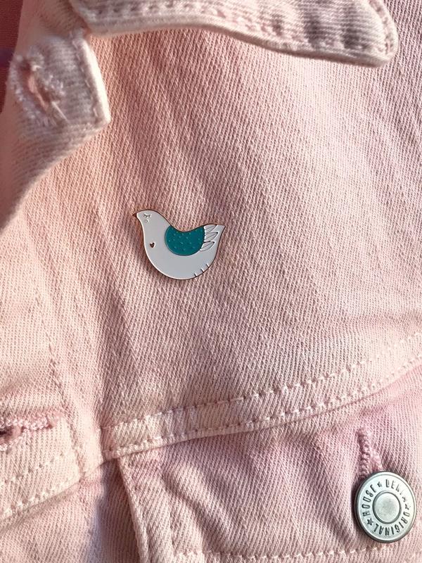 Мой авторский металлический значок. Основной цвет эмали белый, крыло голубики бирюзовое, металлический контур с сердцем золотого цвета. Благодаря своей простоте такая заколка будет очень аккуратно и красиво смотреться на любой вещи - на свитере и платья, на рюкзаке или на сумке. РОЗМІР 2x2 см МАТЕРИАЛЫ металл (латунь) золотого цвета емаль (біла і бірюзова)