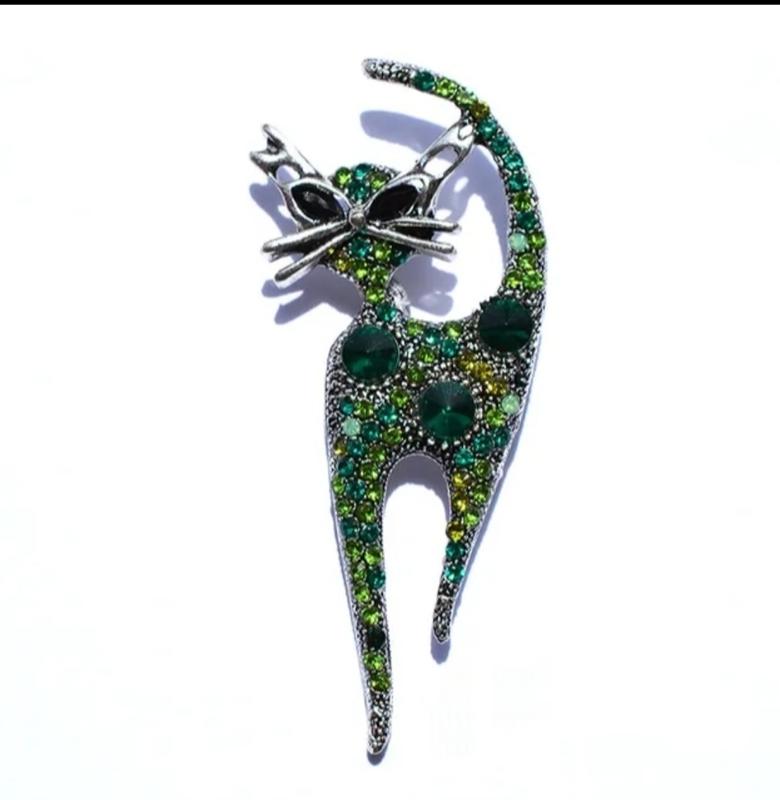 Брошь-подвеска Кошка имеет смысл в защите своего хозяина от завистливиков и негативного воздействия. Некоторые люди верят, что защитные свойства предосторожности усиливаются, если украшение с изображением кошки носить ближе к плечу. Это идеальный подарок для тех, кто ценит изысканность и желает подчеркнуть свою уникальность. Размер: 7 см * 3.2 см; Материал: сплав металла, зеленые камни, стразы Можно использовать как подвеску есть кольцо для цепочки. Отправляем в подарочном пакете удобным вам способом.