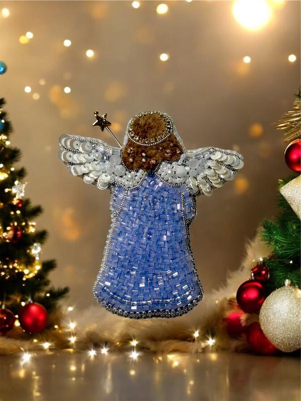 Брошь рождественский ангел из бисера подарок на режет для девушки