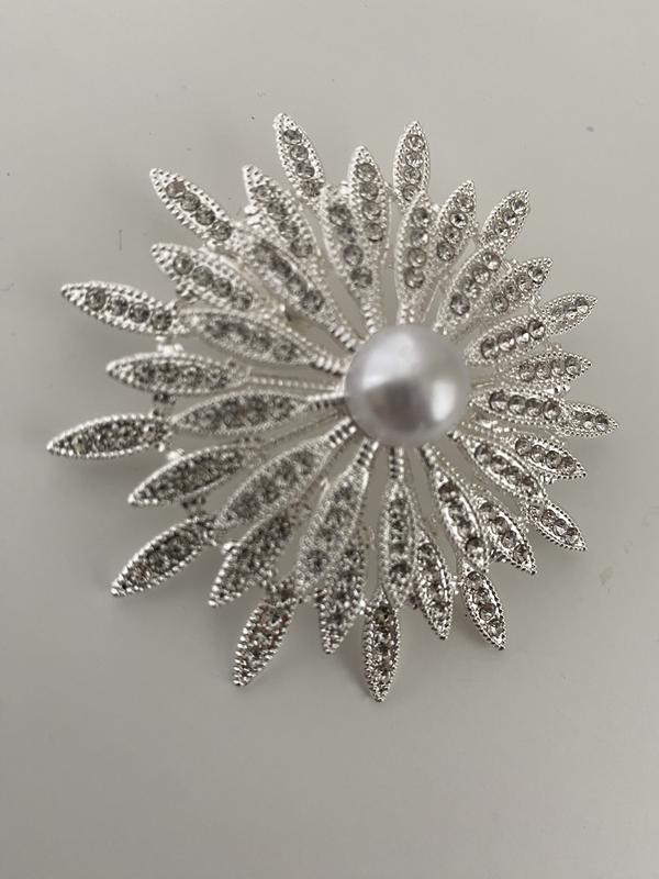 Брошь двухслойная с кристаллами и искусственной жемчужиной. Диаметр 6,5 см.. Невероятно сверкает. Приятный вес, прочная широкая застежка. Подстраивается под цвет одежды и меняет свой оттенок. См. другие украшения