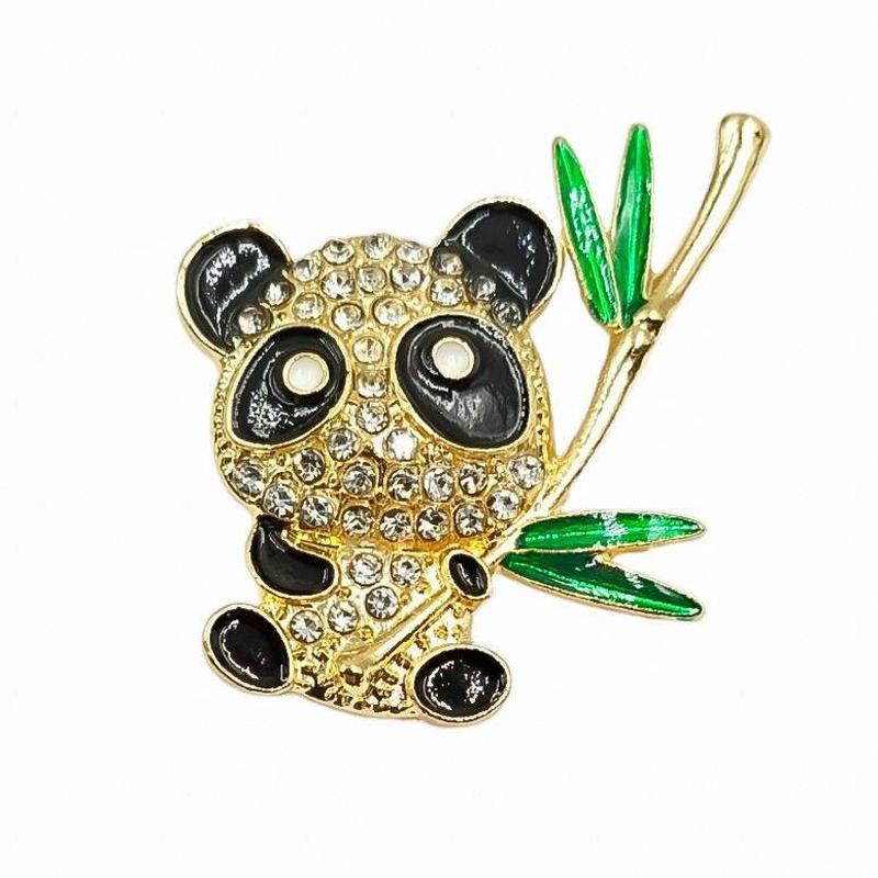 Красивая брошь в виде панды. Модное и стильное украшение для костюма, кофты, пальто. Придаст вашему образу нотку элегантности и роскоши. Цвет лимонного золота.. Размер 3x4 см, Булочное крепление. Отправляем в подарочном мешочке.