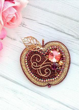 Соковите і сяюче яблучко 🍎. Медно-шоколадный оттенок с персиковыми нотками, добавляет орошке изысканности и "вкуса" 😊. В работе: японский бисер, кристаллы, жемчуг и бионсы Swaro💎ski, индийская кантель. ~~~~~~~~~~~~~~~~~~~~~~~~~~~ 🍎 Размер : 5,3см х 4,3см. ~~~~~~~~~~~~~~~~~~~~~~~~~~~