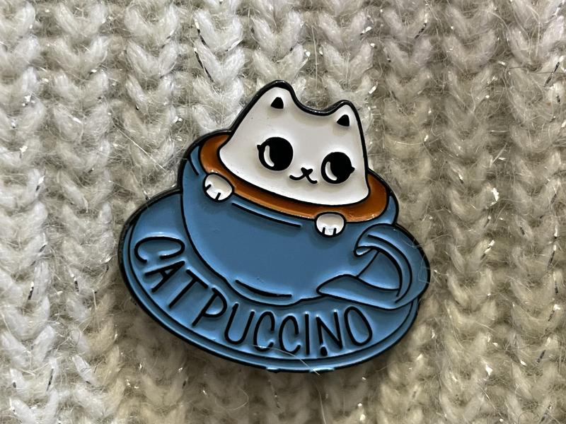 Металевий значок кіт котик в чашці кофе чашка капучино кот