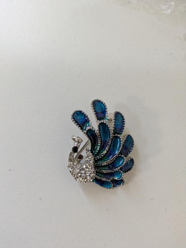 Брошь Павич с эмалью и стразами Застежка слегка погнутая, на внешний вид не влияет