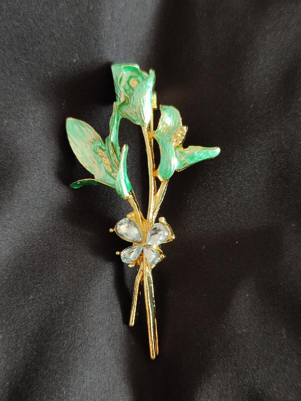 Красивая брошь Лилии три зелёные. Цена занижена, так как замок слабый. Цена на две уцененные брошки 57 грн., 3 брошки - 78 грн., 4 - 99 грн. Большой выбор брошей у меня на странице. Выбирайте.