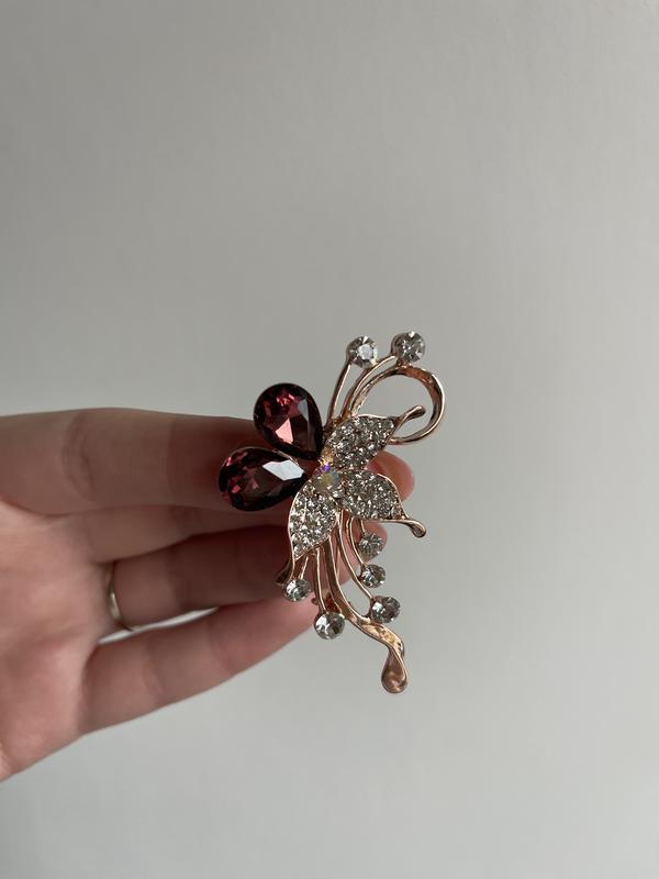 Элегантная брошь в форме цветка орхидеи с насыщенно бордовыми кристаллами и лепестками, покрытыми мелкими камушками. Изящные изгибы и прозрачные вставки добавляют украшения легкости и роскошного блеска. Идеальный акцент к вечернему образу или стильное дополнение к жакету, платью или шарфа. Эта брошь станет отличным подарком для ценителей изысканной бижутерии. В наличии всего 1 шт, так что это эксклюзивное украшение, которое не будет ни у кого другого. Подарочная упаковка: За дополнительную плату возможно оформление в подарочную коробочку (от 10 грн до 30 грн, в зависимости от размера коробочки).