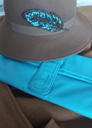 брошка-перо в стилі бохо, ручна робота, зворотня сторона натуральний замш, розмір 12×4.5 см