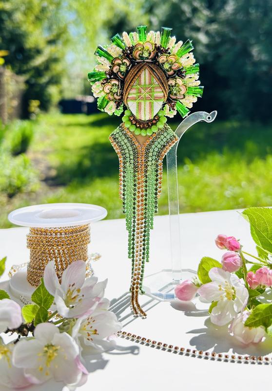 Доволі часто таку прикрасу беруть на подарунок адже брошка слугує оберегом своїй хазяйці. В ній заложений сакральний вміст в кожній ниточці та візерунку. Дуже пишна та велика🫶 Розмір 18*7 см Виготовлена з якісних матеріалів, ззаді екошкіра та міцна застібка, краї прошиті паєтками Можемо виготовити під замовлення з будь яким кольором волосся😉 У нас: -найбільший вибір мотанок в Україні👍 - доступні ціни👌 -швидка відправка по Україні та закордон 🌎 -подарункове упакування 🎁 - безліч відгуків клієнтів