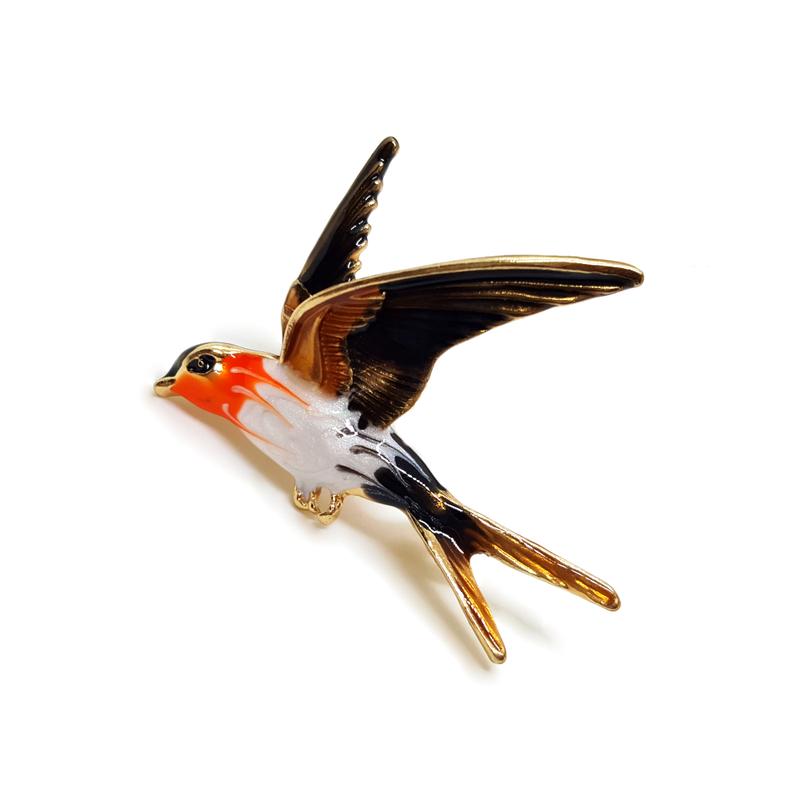 ✨Очень красивая, милая брошь в форме реалистичной ласточки. Голова и крылья птицы украшены яркой ювелирной эмалью оранжевого и черного цвета. Основание броши имеет золотистое покрытие. Есть аналогичная брошь в бирюзовом цвете. Спрашивайте у продавца наличие. Размер: 3,5х5 см. Состав: бижутерный сплав, эмаль.
