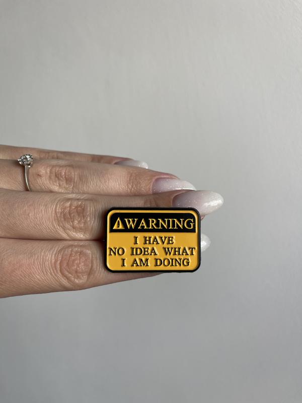 Жартівливий пін значок у стилі попереджувального знаку з написом «WARNING: I Have No Idea What I Am Doing». Ідеальний вибір для тих, хто цінує самоіронію та не боїться визнавати, що іноді ми всі трохи… імпровізуємо. Додасть гумору до щоденного образу — на рюкзаку, куртці чи пеналі. Цей значок стане чудовим подарунком для колеги, друга або студента, який саме «в процесі розуміння життя». У наявності лише 1 шт. Можливе подарункове упакування в коробочку (від 10 грн до 30 грн, залежно від розміру).