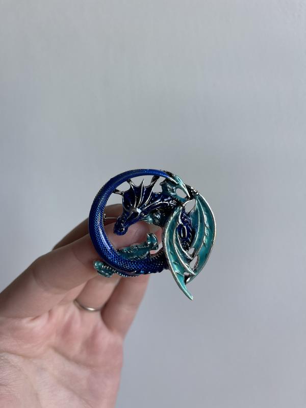 Магічна брошка у формі дракона з бірюзово-синіми крилами та хвилею металевого блиску. Символ сили, захисту та фантазії — ця прикраса ніби злетіла зі сторін фентезійного роману. Ідеально підходить для тих, хто обожнює міфічні істоти, магію та оригінальні акценти в образі. Ця брошка стане чудовим подарунком для поціновувачів фентезі, незвичайних аксесуарів або як талісман для натхнення. У наявності лише 1 шт. За бажанням — подарункове упакування в коробочку (від 10 грн до 30 грн залежно від розміру).