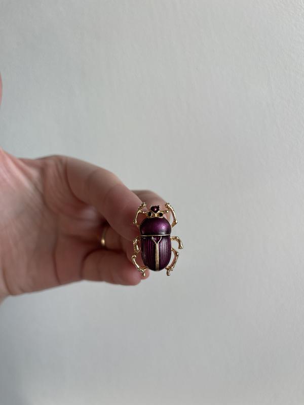 Металева брошка жук скаробей у бордовому золоті