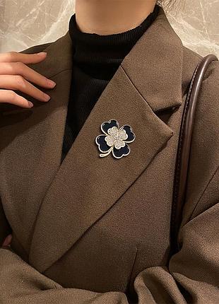 Брошка в форме листа клевера, усеянная кристаллами .Размер примерно 3,5*3,5 см. Брошка металлическая.