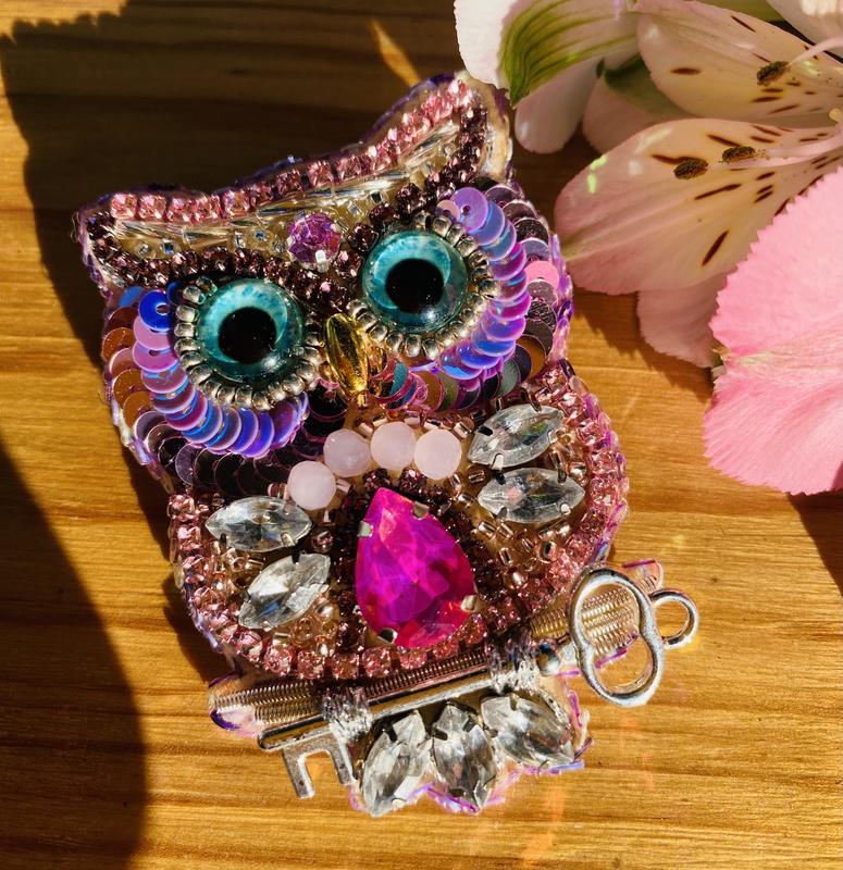 Брошка Сова, виготовлена з бісеру та пайеток. Виготовлена в ручну. Розмір 7 см . Можливий індивідуальний заказ по кольору