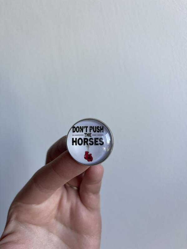 Металева брошка “don’t push the horses” з боксерськими рукавичками