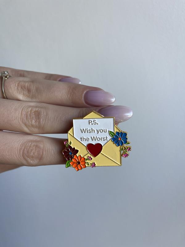 Пін значок металевий брошка конверт з листом “p.s. wish you the worst”