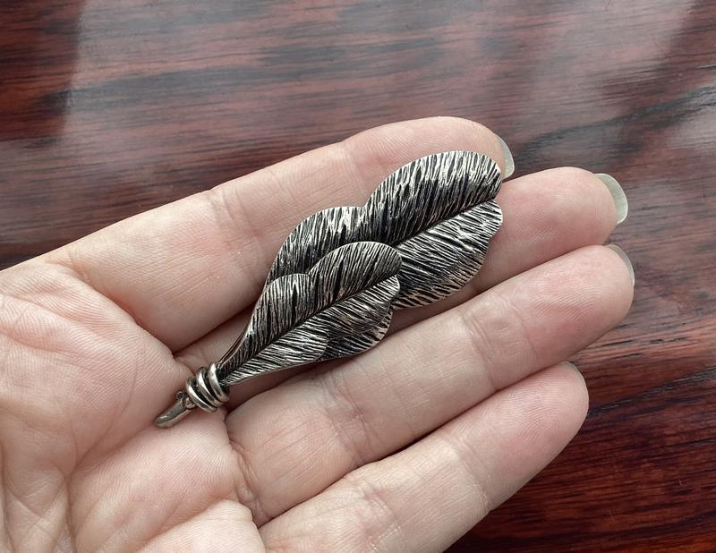 Гарно виконана брошка . Розмір 7 см на 2,5 см. Складається з кількох елементів. Має цікаве гравіювання і чорнінням поверхні. Ручна зборка . Цікаво виглядає на будь якому одязі. Стан відмінний. П8