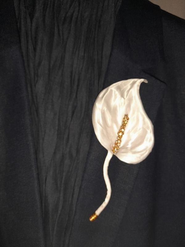ручная работа атласная ткань, золотая нить, стразовое полотно, золотая проволока, японская флористическая проволока
