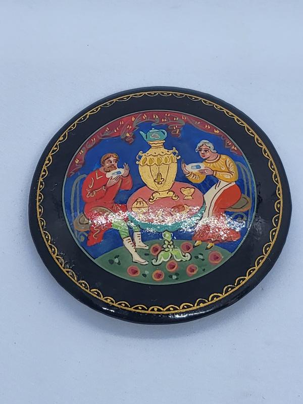 брошь палех сделано в ссср материал дерево ласковая миниатюра