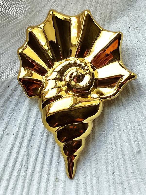 Потрясающая брошь «Мушля» – Ваш акцент стильной элегантности! 6,7 см на 4,9 см Добавьте роскоши и морского шарма в свой образ с этой изысканной брошью в виде золотой ракушки, изготовленной из стали с качественным покрытием Этот блистающий благородным золотым оттенком аксессуар станет идеальным дополнением к вашему наряду, подчеркивая ваш уникальный стиль и утонченный вкус. Вдохновленная красотой морских глубин, брошка выполнена в виде спиральной ракушки, привлекающей взгляды. Идеально подходит к сукостям, блузам, жакетам, шарфам или сумкам. Ищете что-то особенное? У нас есть много других оригинальных и интересных украшений, которые ждут вас. Заходите и выбирайте