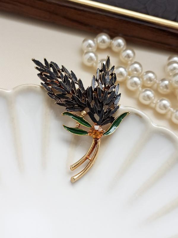 🌾Элегантная винтажная брошка в виде веточки, украшение, воплощающее естественную гармонию и утонченность старинного стиля. Черная эмаль на золотой основе создает эффект глубины и загадочности, а зеленые листочки добавляют живости и естественный шарм. В центре блестит кристалл теплого янтарного оттенка, который деликатно отражает свет и привлекает взгляд. Отличное состояние 🔥 Размер 4,2 см * 5,5 см
