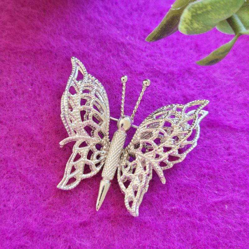 Удивительно нежная каталожная брошка знаменитой американской компании MONET. Объемный, ажурный - именно таким и должен быть бабочка, пусть и с металла)! Украшение выполнено из бижутерного сплава "под серебро". Филигранная работа, стильный дизайн. Брошка промаркована. В идеальном состоянии. Размер 4 х 4 см. Добавлен видеообзор.