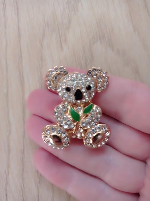 Брошь Коала, украшена стразами и камешками.