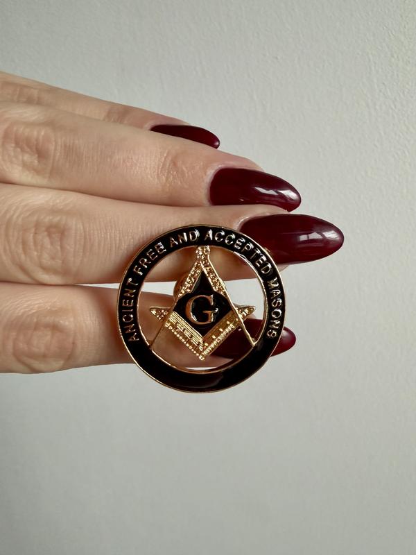 Елегантний золотистий пін у формі масонського символу з циркулем і кутником, усередині яких розміщена літера «G». По колу викарбувано напис: Ancient Free and Accepted Masons. Цей аксесуар випромінює вишуканість і містицизм, ідеально підходить для тих, хто захоплюється символізмом, філософією чи шукає нестандартний, впізнаваний елемент стилю. 📌 Чудово виглядає на піджаку, сорочці, сумці або у вашій колекції значків. 🎁 Прекрасна ідея для подарунка — стильного, незвичного та символічного! 🧷 У наявності лише 1 екземпляр, що робить цю прикрасу по-справжньому унікальною. 💝 За бажанням можна додати подарункове упакування — коробочку вартістю від 10 грн до 30 грн (залежно від розміру).