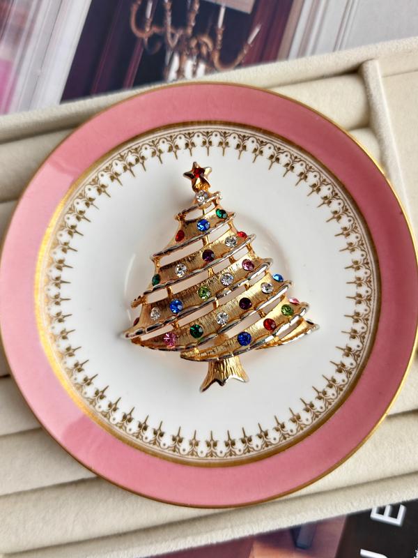 Ялинка з кольоровими камінцями • без маркування • чудовий вінтажний стан, проте в одному місці має тріщину. це враховано у вартості • 5,7х5,2 см • має вагу