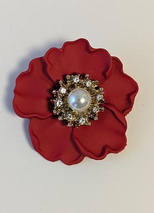 Красная брошь в виде цветка - мак.Скрединка - камушки. Нарядна прикраса. Размер 4,3 см х 4,3 см