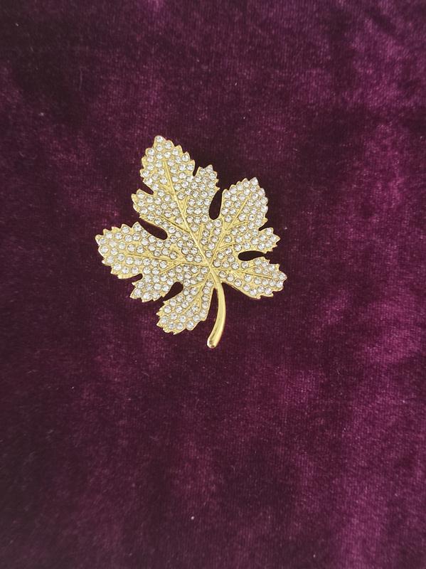 Элегантная и яркая брошь в виде кленового листа, которая добавит шарма вашему образу. Она идеально подойдет для украшения пальто, пиджака, шляпка или шарфа. Изделие полностью усыпано прозрачными кристаллами, которые невероятно сияют и переливаются при любом освещении