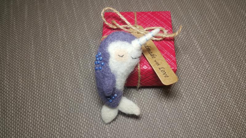 Брошь из шерсти нарвал единорог значок ручная работа подарок валяние фелтинг