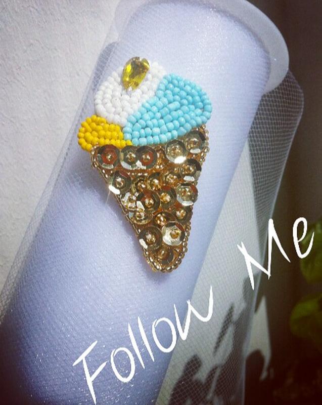 Актуальная и стильная брошка в виде мороженки 6см х 4см Носим смело на рубашках, куртках, пальто, джинсах...в общем где кому удобно и нравится))) Очень красиво блестит. Отправка новой или укрпочтой, в Киеве возможен самовывоз