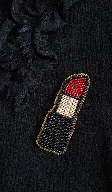 Брошь помада из бисера