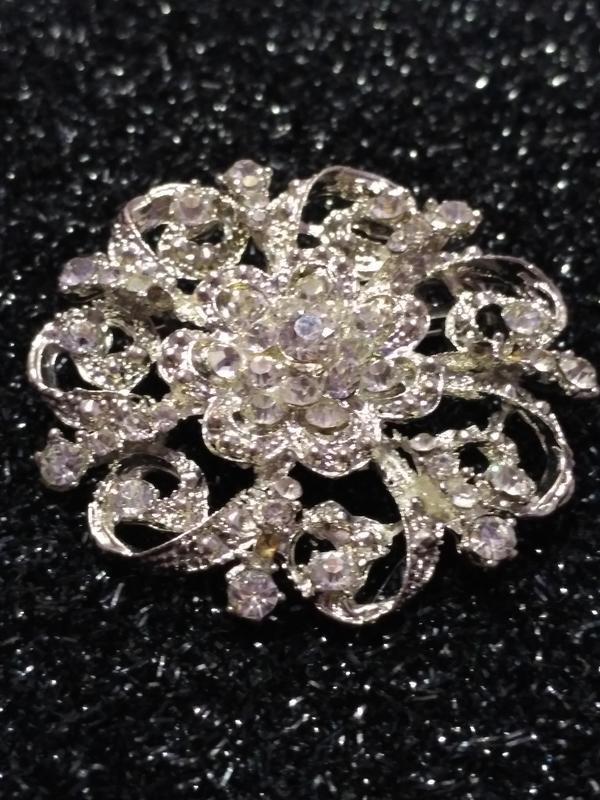Металлическая брошь с кристаллами.Замок работает.