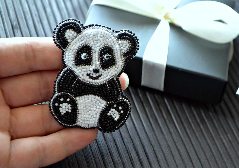 Брошка панда зроблена з японського бісеру,розмір 4,5-5.5 см Застібка-посріблена сталь.
