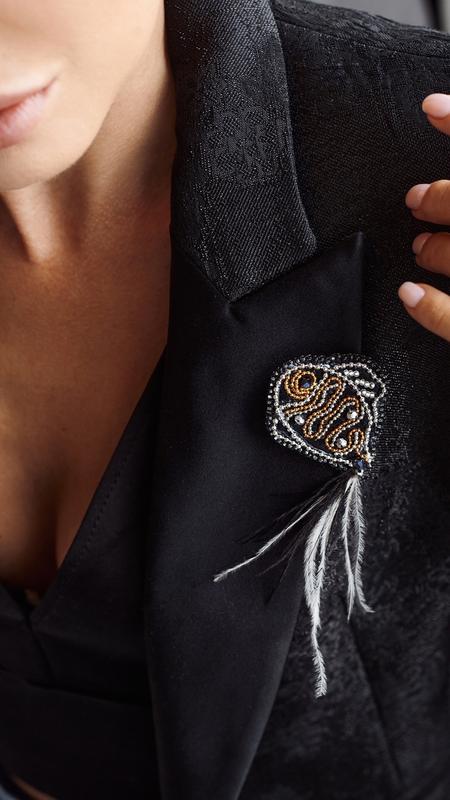 Брошь «Рыбка» - 400 грн Длинна - 5,5 см {без перьев} Высота - 5,5 см Материал: фетр расшитый бисером Preciosa с добавлением фурнитуры и страусиных перьев.