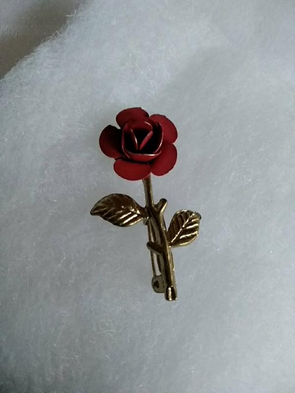 брошь розочка. длина 4см. роза металл покрыта эмалью.
