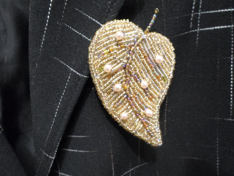 Брошь из бисера "золотой осенний листик".ручная работа Оплата на карту. Без торгу. Отправка по укрпошту