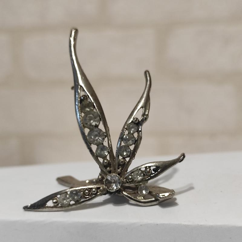 брошь под серебро СССР отломлена часть, листик