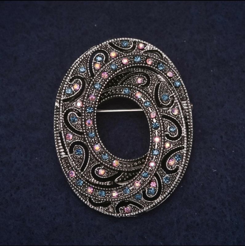 Брошь Акцент 45х35мм стразы цвет синий хамелеон розовый