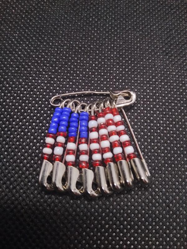 брошь из булавок украшеными бисером.на булавочке 8 шт.в цвете американского флага.