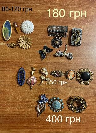 Самые разные броши. Винтажные и современные. Из натуральных и штучных материалов. Яркий акцент этого сезона Цены разные: от 100 до 500 грн
