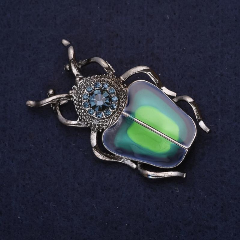 Брошь Жук, стразы, эмаль с камнем цвет зеленый, синий, голубой 50х30мм