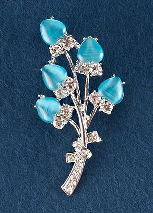 Брошка Букет з каменем блакитний Котяче око