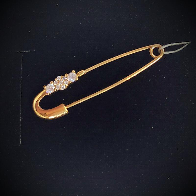 Золотая булавка Проба 585 Украшена фианитами Вес 1.2